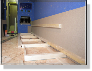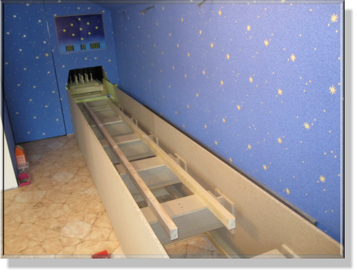 Auf die Längsbalken kommt später eine MDF-Platte als Grundplatte für die Bahn.