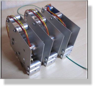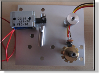 Stellautomat - Spickschalter - AufbauHier sieht man, wie die einzelnen Teile verbaut werden.Das Spickrad mit seinem KugellagerDie Gabellichtschranke erkennt die Dreh-bewegung des SpickradesHubmagnet mit KlemmhebelDie andere Seite mit den Distanzbolzen3 fertig verschraubte Einheiten